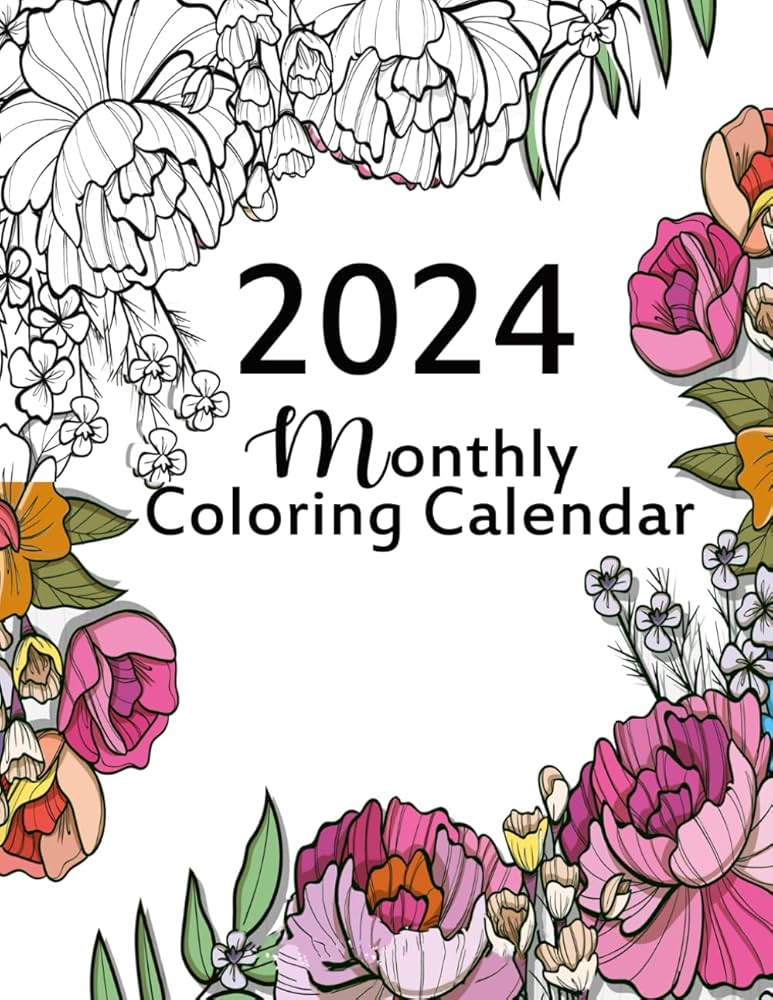 2024 Monthly Coloring Calendar: 12 Month (01 Jan To 31Dec ) with a